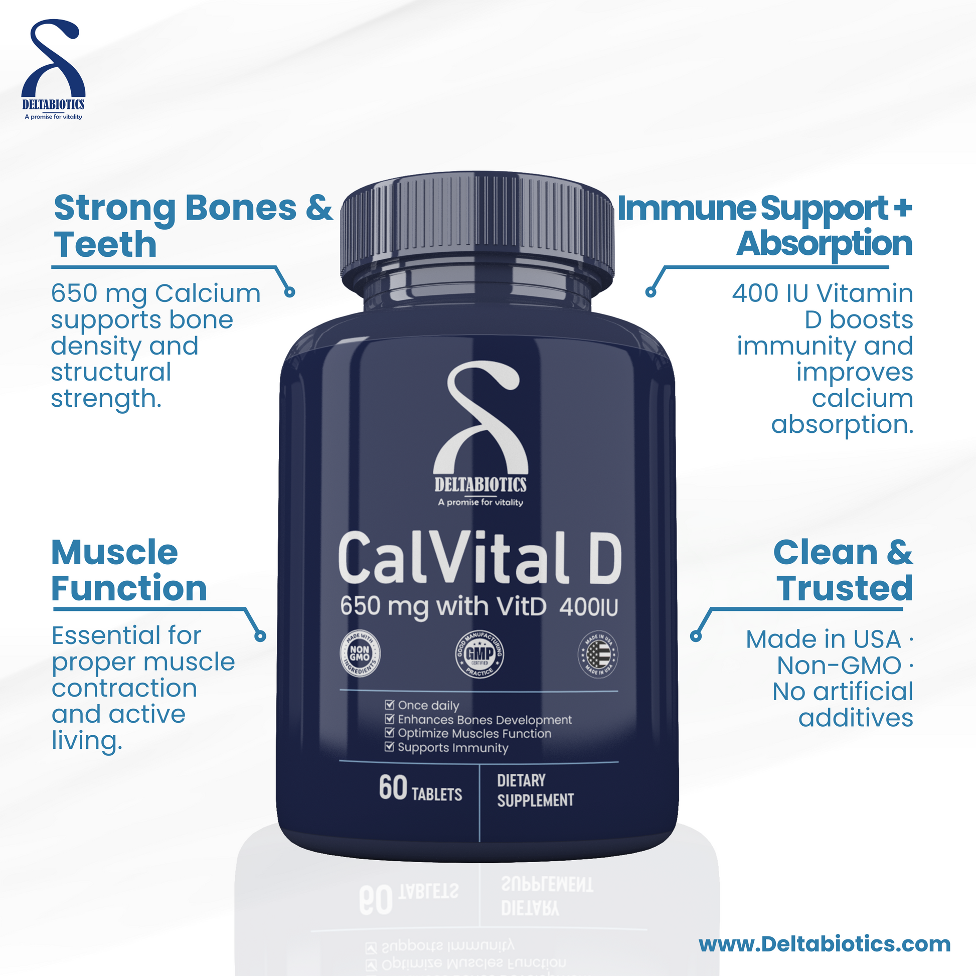 CalVital D – 650 mg Calcium with Vitamin D 400IU Enhance Bone Strength and Support Your Immune System